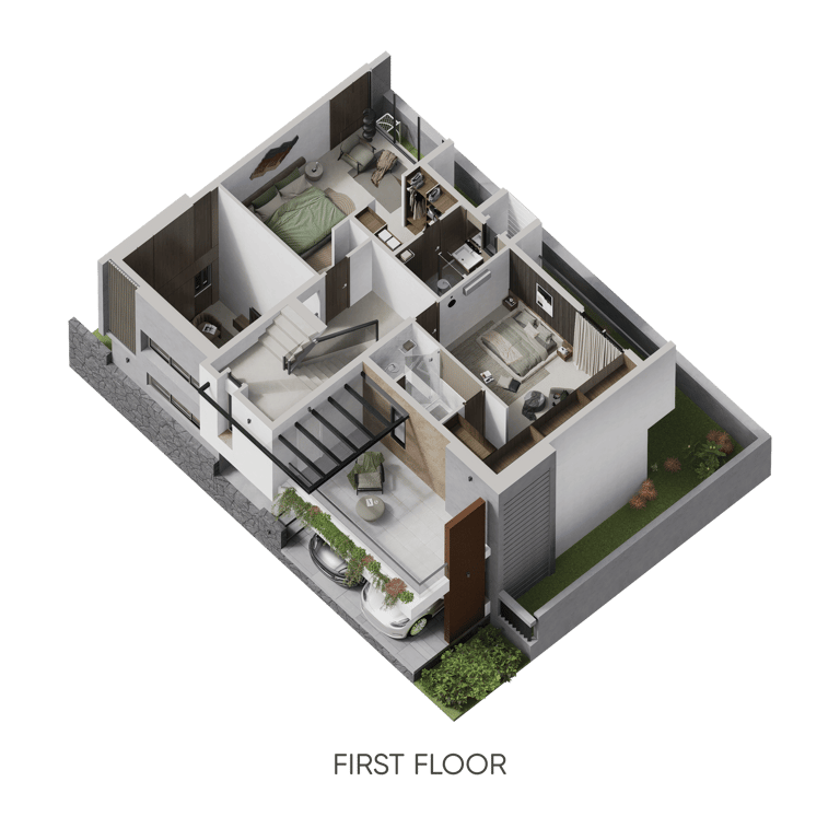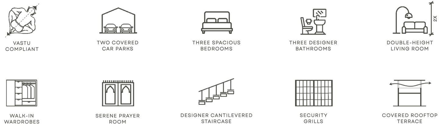 Each villa at Ramchandani Divyashree is thoughtfully planned with a keen emphasis on spaciousness and elegance. The magnificent double-height living rooms create a grand sense of openness, while the expansive bedrooms, complete with walk-in wardrobes, ensure ample storage and a touch of luxury. Every detail, from the luxurious finishes to the Vastu-compliant design, has been meticulously crafted to infuse your home with positivity and harmony.